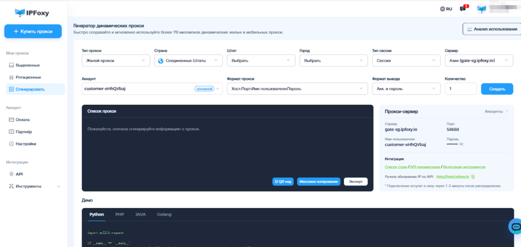 IPFoxy поддерживает API-интеграцию, аутентификацию по логину/паролю и гибкие способы настройки, что позволяет легко подключать прокси к антидетект-браузерам, инструментам автоматизации, десктопам, мобильным устройствам или кастомным рабочим процессам. Нажмите, чтобы начать